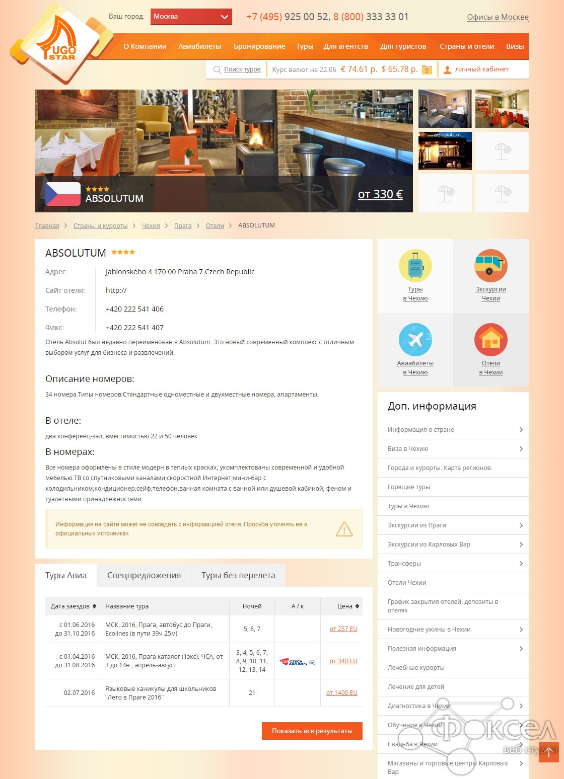 - вывод информации по отелю в Мастер-Web